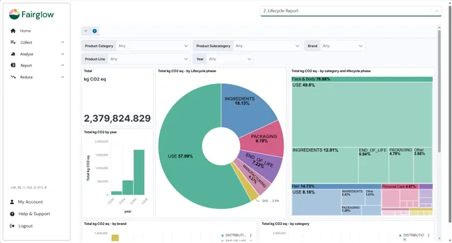 Fairglow réalise des ACV détaillées sur l’ensemble de votre portefeuille. Notre plateforme prend en charge les produits à la formulation complexe, du packaging réutilisable, ainsi que des chaînes d'approvisionnements multiples.